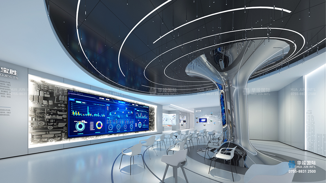 寶勝科技園區(qū)展館設(shè)計項目是由華竣出品的優(yōu)秀作品,華竣以創(chuàng)新的智慧展廳設(shè)計理念,融合互聯(lián)網(wǎng)+思維,順應(yīng)科技化趨勢,結(jié)合互動多媒體、數(shù)字影片、數(shù)字沙盤、虛擬現(xiàn)實等科技展項,打造震撼視覺的高品質(zhì)科技展廳。