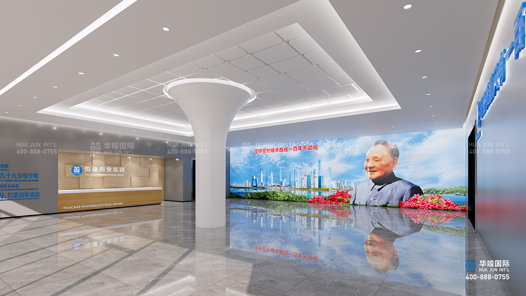 悅康藥業(yè)集團(tuán)展示中心于2018年竣工,當(dāng)時(shí)正值改革開(kāi)放40周年。為此,我們?cè)谇皬d專門設(shè)立了鄧小平同志的專題影像展示區(qū),以長(zhǎng)達(dá)十三米的數(shù)字LED大屏講述改革開(kāi)放總設(shè)計(jì)師鄧小平的傳奇人生,表達(dá)悅康人的感恩之心、致敬之意。